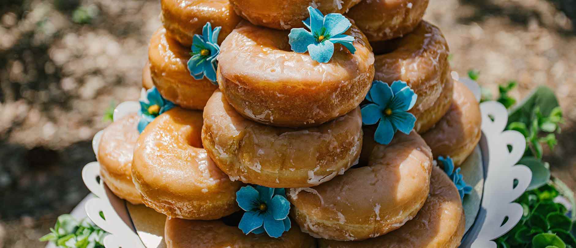 With a variety of fillings and a little bit of creative presentation, you can have a very cost-effective alternative to your wedding cake in the form of doughnuts. Doughnuts are inexpensive treats and can serve as a pretty alternative to the wedding cake. Stack them up on top of each other, and use your favorite topper to create an impressive doughnut wedding stack.